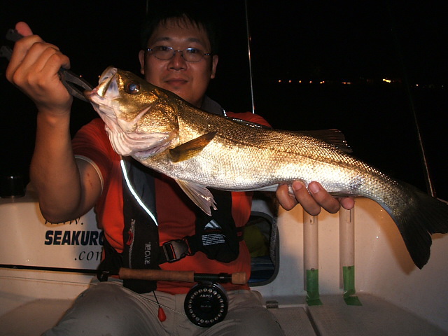 初乗船のフライマンのお客様1名様で出船。2箇所目に入った常夜灯ポイントでボイル! 風向的にキャストはしにくいが、ピンスポットにさえフライが入ると必ずバイトがある状況。ここではガンガンとヒット、一気に連釣して59cmまでをキャッチ(バレてしまった魚は60アップでもっと大型)。 1名様でバイト20発以上・キャッチ12本(50〜59cm)。