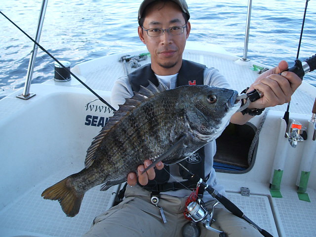 クロダイのルアーフィッシング、3名様で出船。最初のポイントをジックリと攻めていくとあちらこちらの水面直下にチラチラと見えクロの姿が。