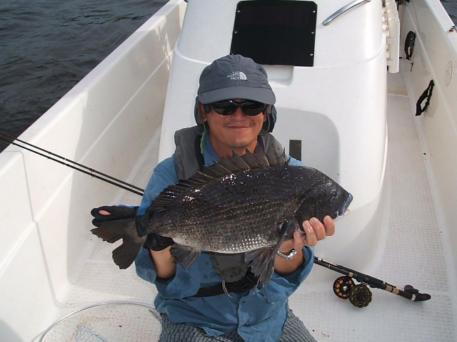 その後は移動するポイント毎にアタリやヒットが出て、お客様2名様でダブルヒットのシーンや水面直下で見えている黒鯛を見釣りでキャッチしたシーンなど超高活性。