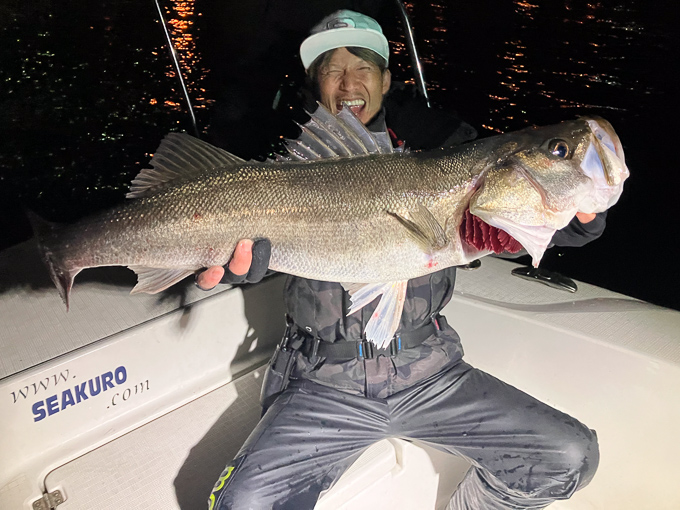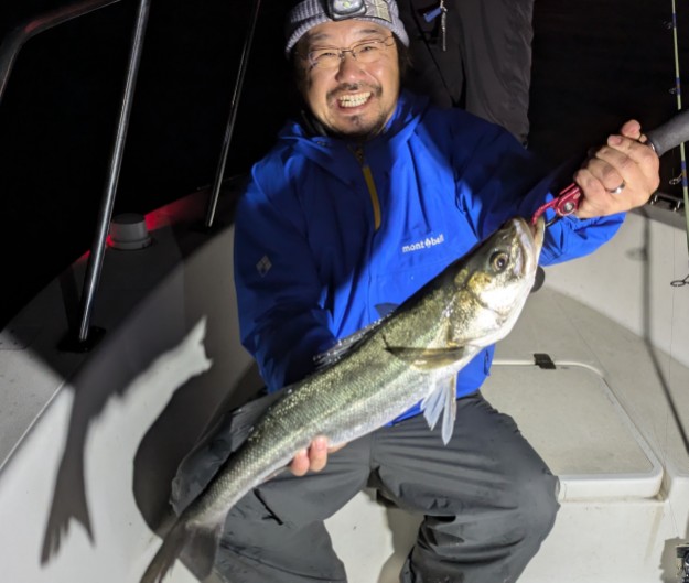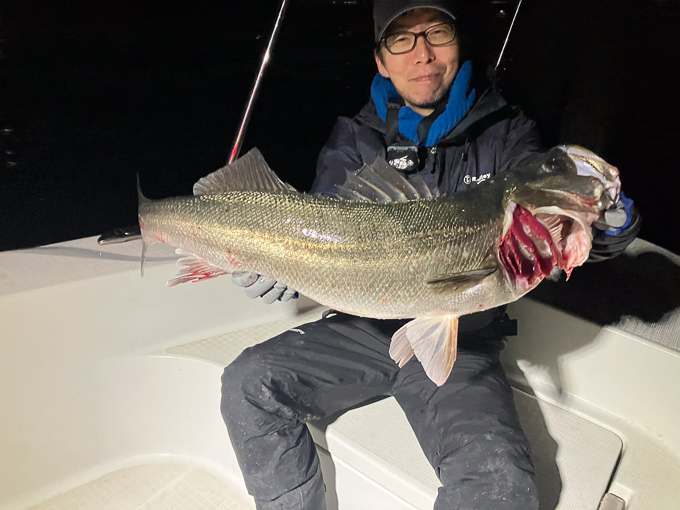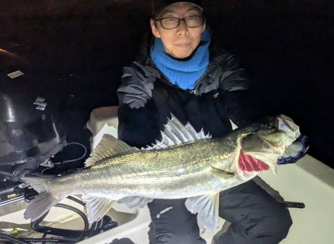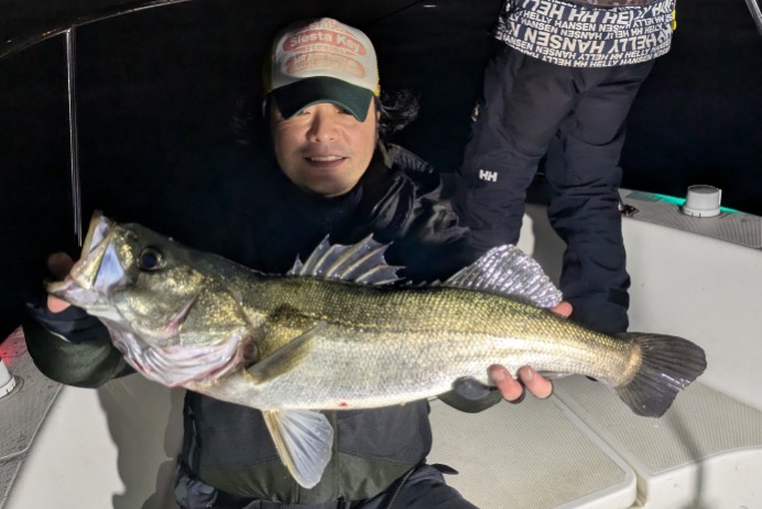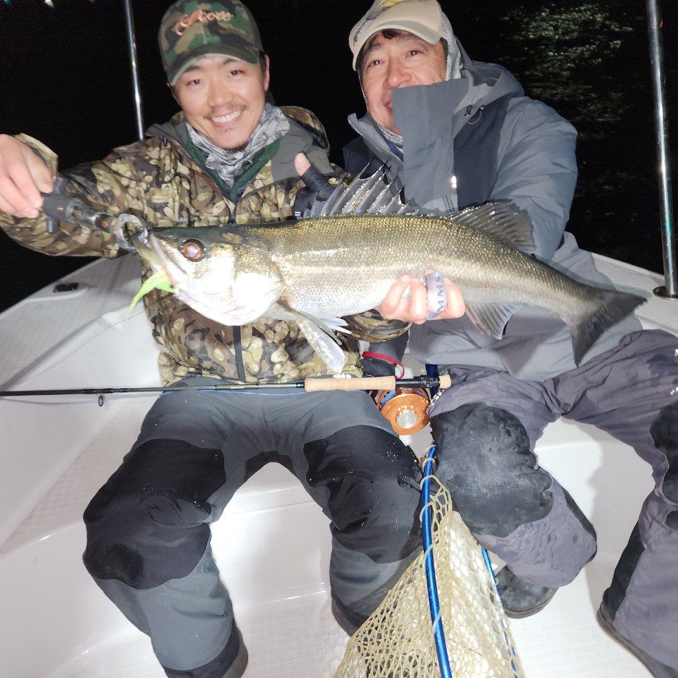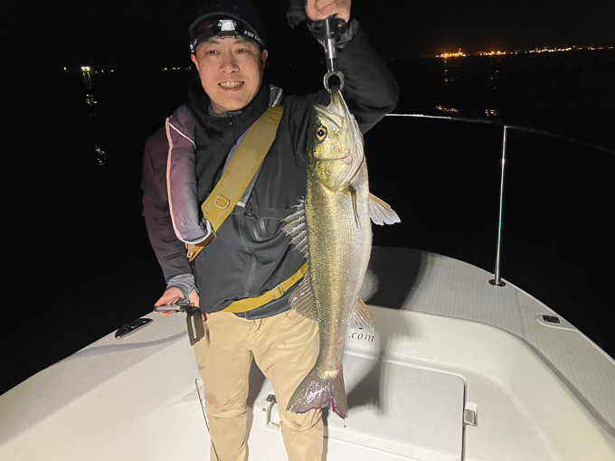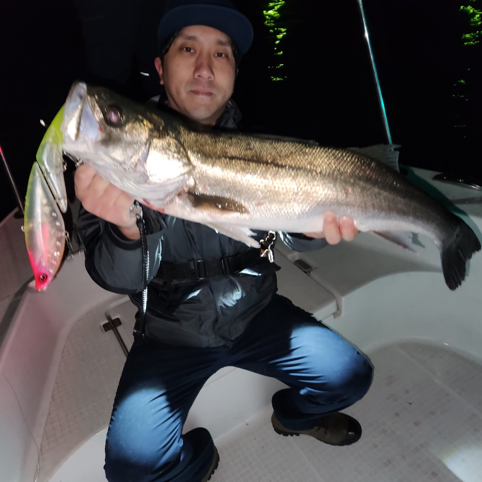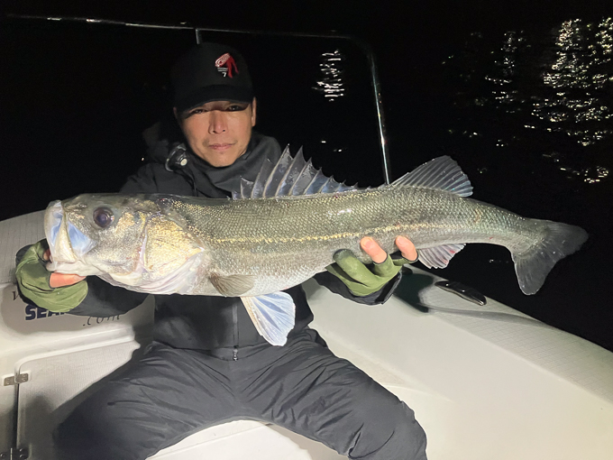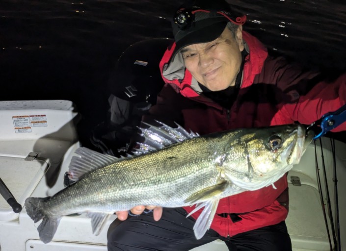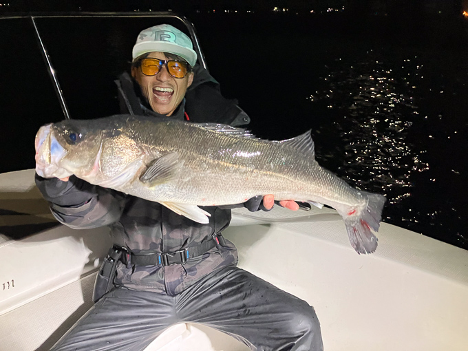 好タイミングでスポットに入るとグッドサイズ連発!ボートシーバス初チャレンジのお客様も小型ミノーでグッドサイズをしっかりキャッチ!お見事でした!!