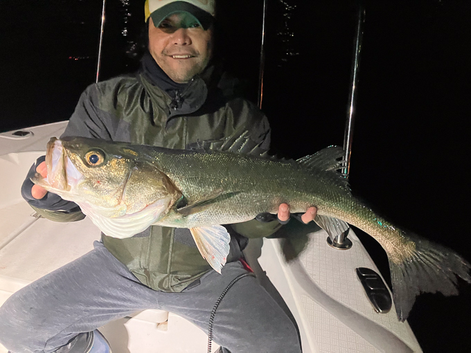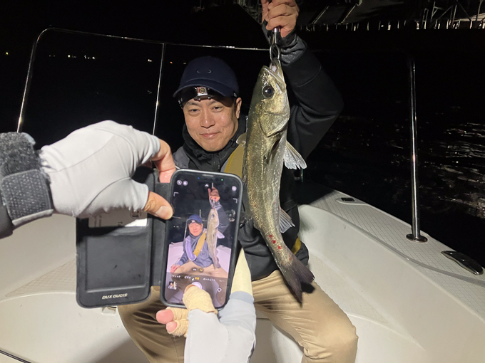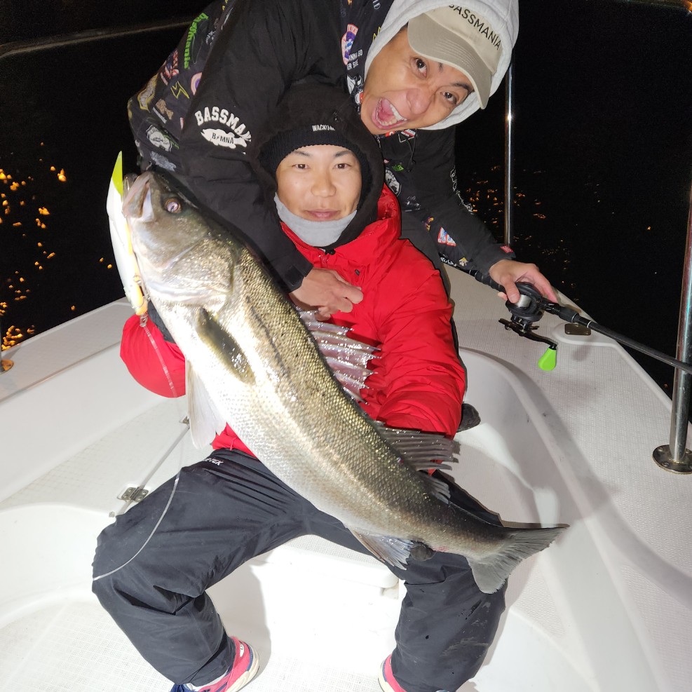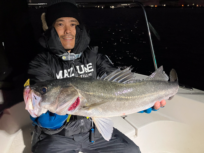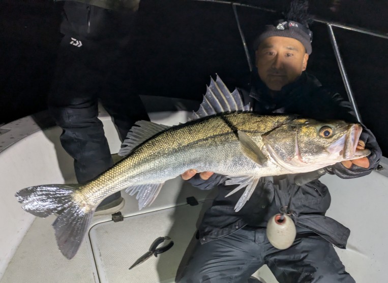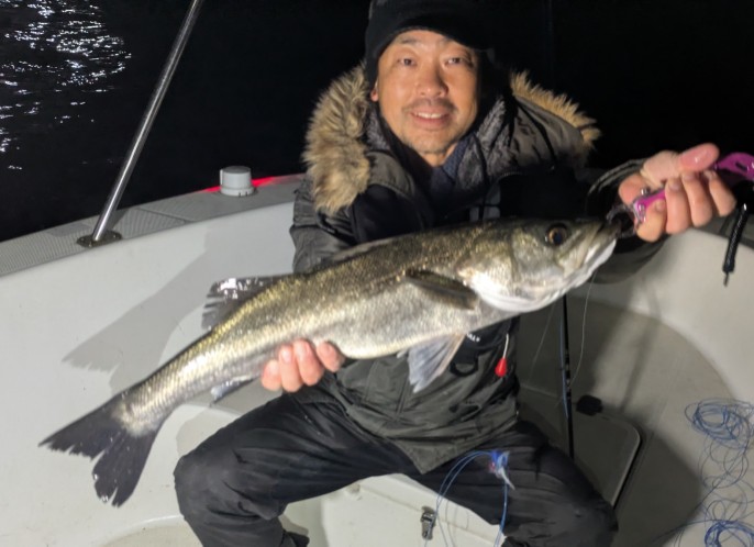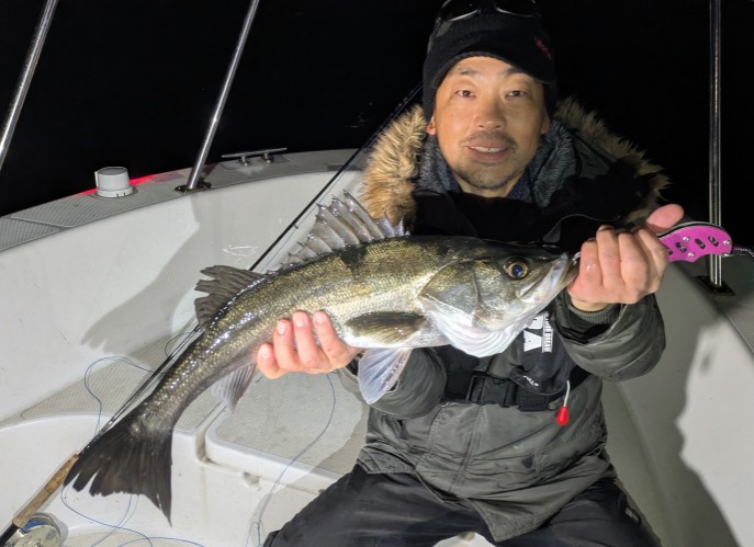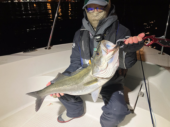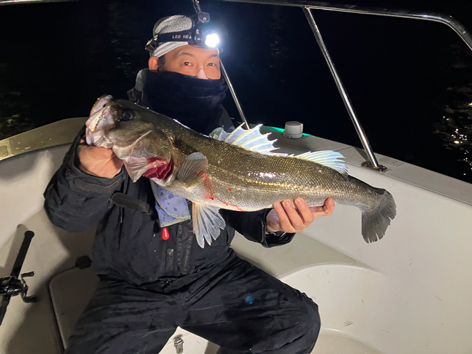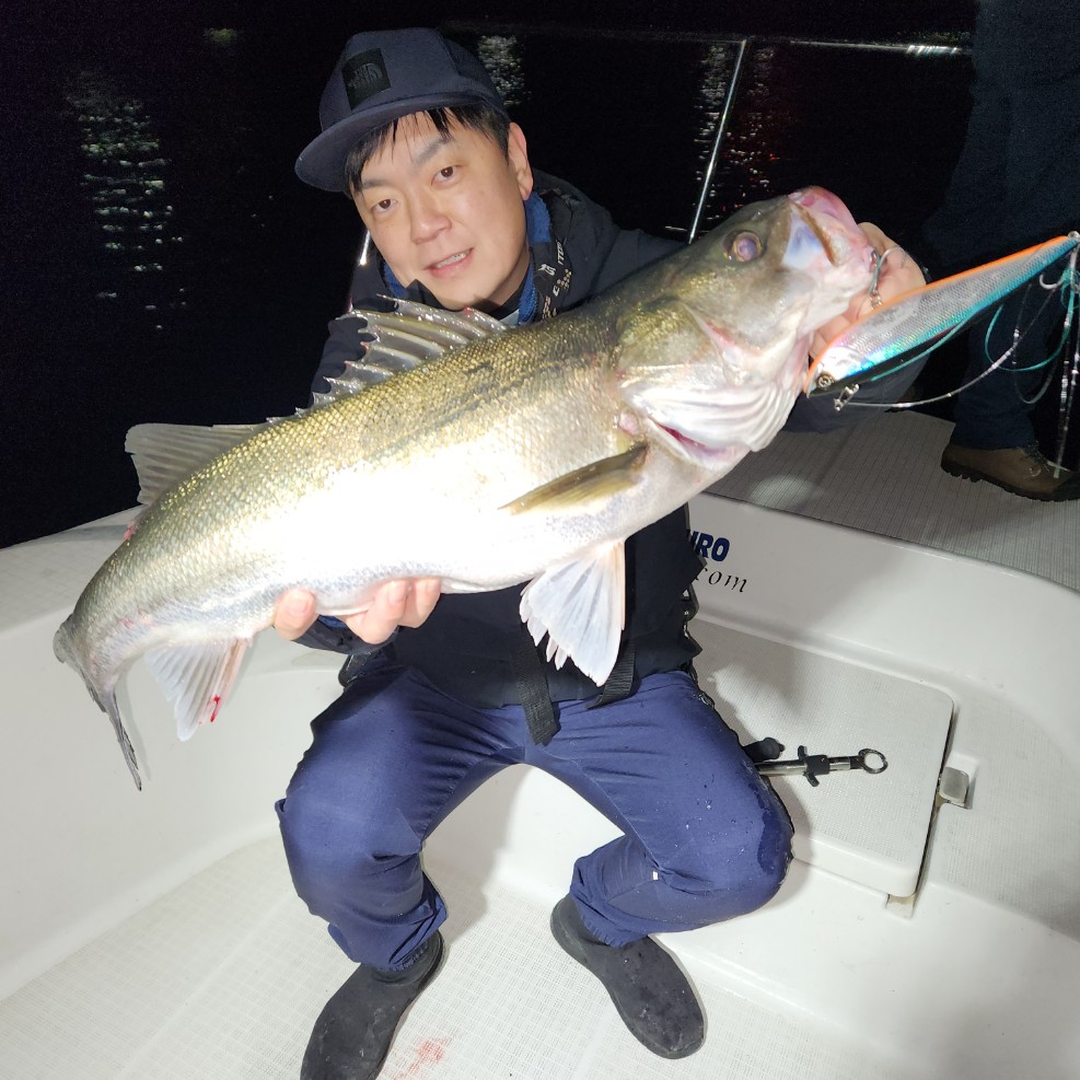 好タイミングでスポットに入るとグッドサイズ連発!ボートシーバス初チャレンジのお客様も小型ミノーでグッドサイズをしっかりキャッチ!お見事でした!!