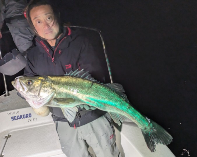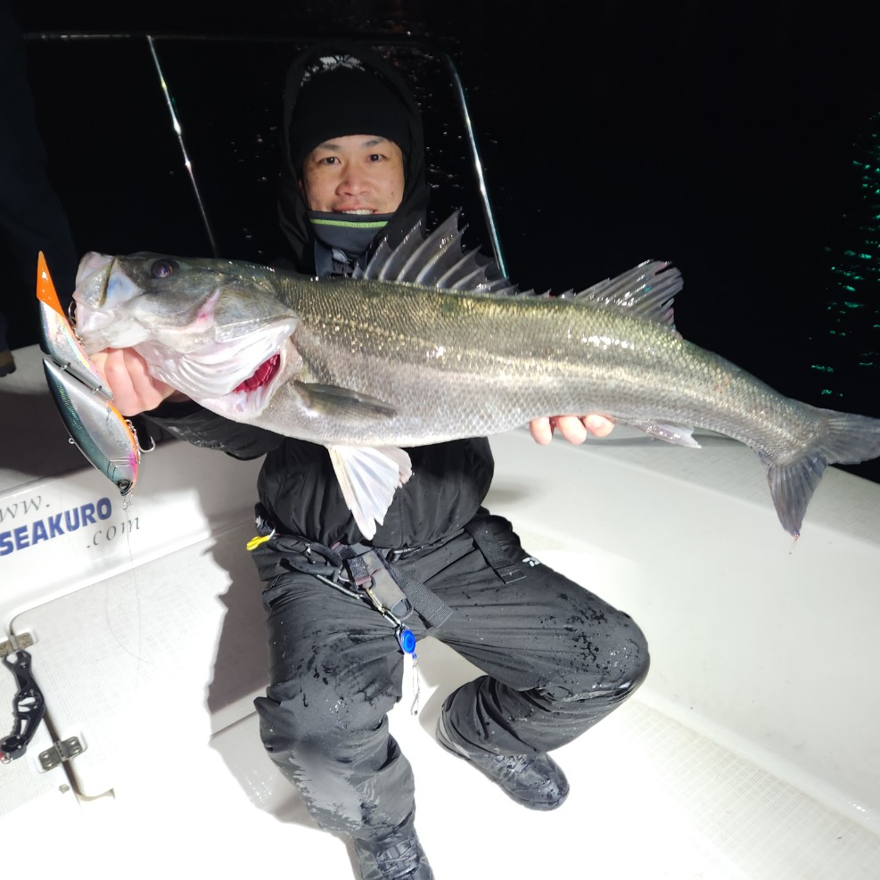 ビックベイト便で出船。地合いのタイミングでディープベイトでヒット!85cmの極太シーバスをキャッチ!その後もコンスタントにヒットしたゲスト様。お見事でした!