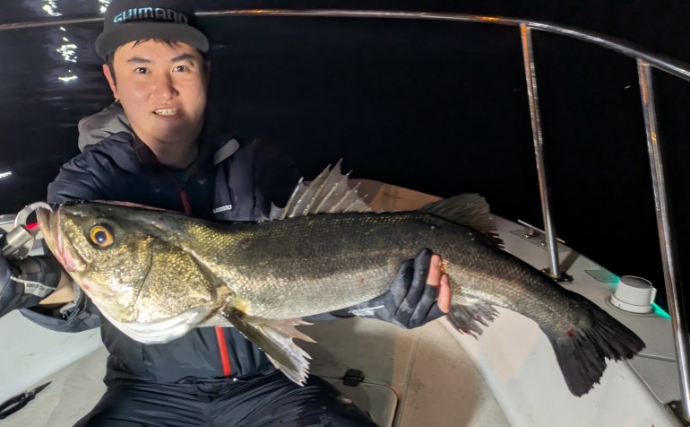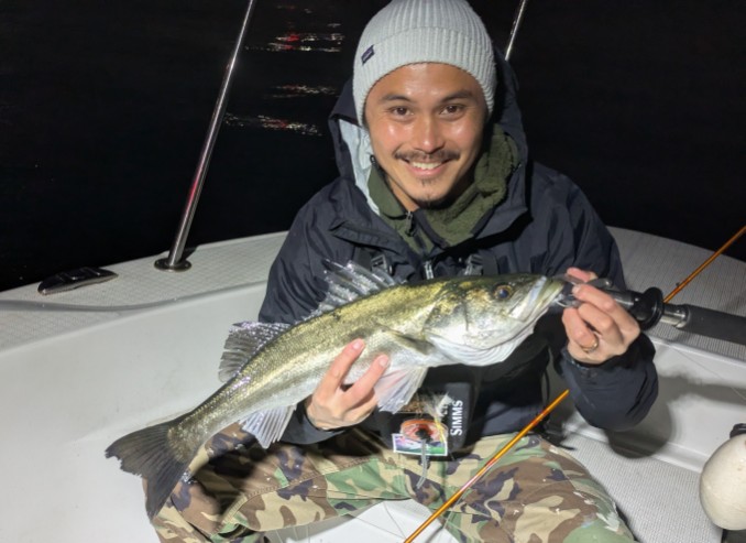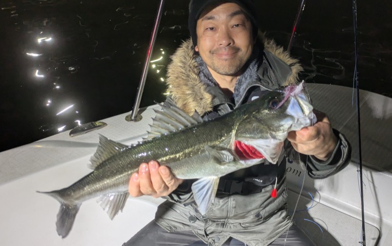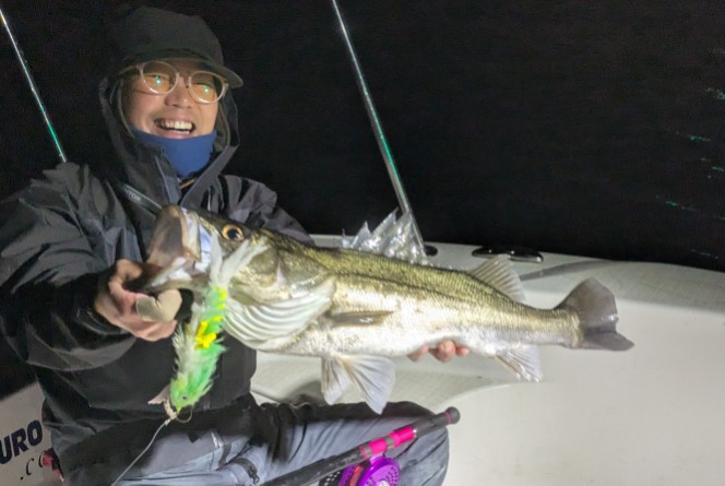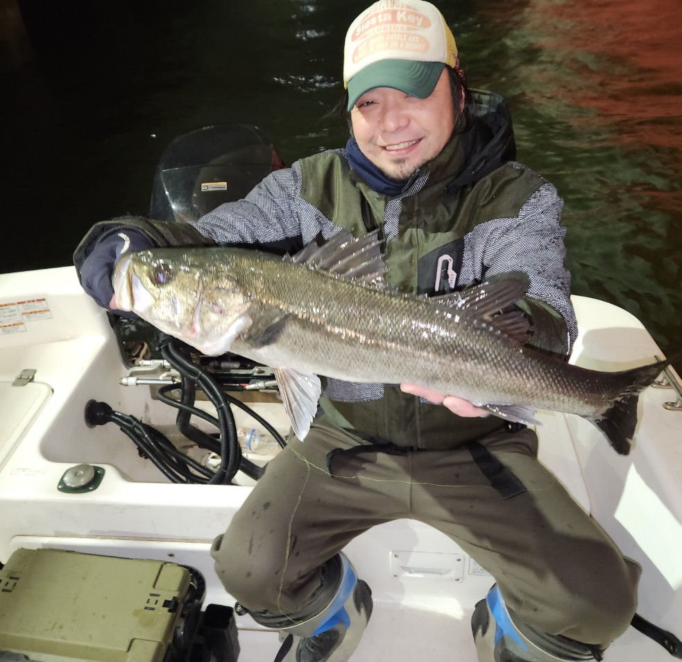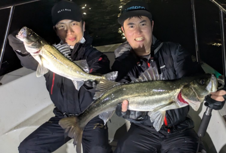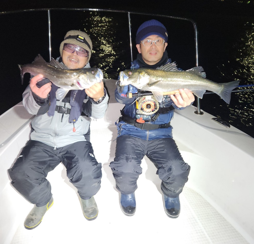 ルアーも好反応、お二人で寒さ吹き飛ぶシーバスフィッシングを楽しんでいただきました!