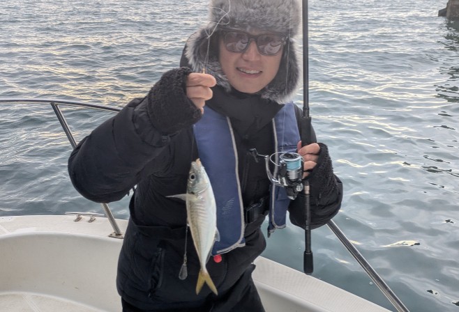 昼過ぎからのんびり出船、スタートはアジサビキから。