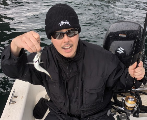 開始早々から釣り初チャレンジのお客様、センス良く要領掴みグッドサイズをキャッチ!良型の数も出たのでルアーへシフト。