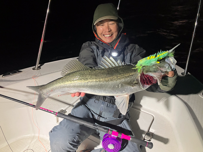 ビッグベイトをキャストするとビッグヒットして70オ一バ一をキャッチ!