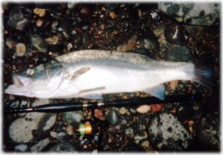 自分の釣り人生の中で、とにかく無我夢中になって追いかけた魚・・・それがヒラスズキです。 ヒラスズキという魚の存在を知ったのは80年代中頃、今はなき「フィッシング」という雑誌のグラビア上でのことでした。 そこで取り上げられていた尊敬すべきシーバスの大先輩F・W両氏の外房ヒラスズキゲームの記事を目にして以来、ヒラスズキの美しい魚体や、なかなか釣れない希少性・荒天時の荒磯の大ザラシに立ち向かっていく自己陶酔感や、狙った場所で大型を釣った時の身震いするほどの恍惚感など、ヒラスズキという魚に完全に魅せられて、長い年月、ヒラスズキにはどっぷりとはまっています・・・。 近年では同じ磯魚でも石物釣りが多くなって、ヒラスズキからは足が遠のいていますが、ヒラスズキ釣りから得た貴重な経験や孤高のヒラスズキ仲間達との交流は、私の宝となっています。 ここで、私にとっておそらく一生忘れ得ない人生最良の夜・・・ 巨大ヒラスズキをキャッチした、ある真夏の夜のストーリーをご紹介したいと思います。 その頃の私は、「魚=ヒラスズキ」というくらいヒラスズキ症候群で、90センチ上の夢の大物に憧れて、狂ったように伊豆半島に通っていました。大物の夢実現のために、週2釣行を繰り返していました。 あるポイントに照準を合わせてから連続ボーズも15回を超え、前回はまったくカスりもしなかったことから、これまでの強行軍=「往復計4時間のロングドライブ」+「釣り時間は2時間弱のみ」というクレージー釣行に迷いが出始めていました。しかし「大物を狙うなら、この時期のあの場所しかない!」との信念の下、初志貫徹を誓い、邪念を振り払って横浜の自宅を出発しました。 今でもハッキリと覚えていますが、目的地に向かう夜のドライブの最中に雨が上がり、ちょっとモヤがかかってきて、釣り師の第六感というべきか「今夜は大型が釣れそうな気がするナ」と車中で感じました。 大急ぎで到着したポイントは、平日の晩だったこと、そして伊豆半島のヒラ師がまだ少ない時期でもあり、予想通り貸切状態。はやる気持ちを押さえつつ、そそくさと準備を済ませて早速釣りを開始。車中で感じた第六感とは裏腹に、キャストを続けてもやはりノーヒット。もうこうなると釣果はどうでも良くなってきて、波をかぶりながら満天の夜空の下、ただそこで独りで釣りをしているだけで自然との一体感を感じ、恍惚感に包まれてしまう・・・。 まるで機械になったように「来るならここ!」と自分で予想したコースを何度もキャストしてはリトリーブを繰り返していた。車から2つ持ってきた信頼のルアーのうち、今まで投げていたアスリートF14からトップウォータープラグのK−TENリップルポッパー115にチェンジ。 今までそこに魚はいたのか、たまたま回遊してきたのか、ルアーを変えてしばらくして「バシャン!」と1回出たものの、これは乗らず。感じからしておそらく60センチ級の中型。悔しかったが「自分の狙いはもっと大型」と無理に納得させて続行。魚の気配ムンムン。 その後数投目に運命のヒット!波間を泳ぐリップルポッパーが巨大水柱とともに消えて一呼吸おいてフッキング!ファイトが一筋縄ではないのですぐに大物であると確信し、無我夢中・・・魚に対しどのようないなしやファイト法をとったのかほとんど覚えていないが、とにかく竿一本まで寄せたときに見たその巨大な魚体に「落ち着け!バラすなよ・・・」と自分を鼓舞させたことだけは覚えている。 ランディングした時は膝がガクガクと武者震いして、誰もいない深夜のポイントで波にズブ濡れになりながら「やったー!」と拳を突き上げ大絶叫しました。その場で急いで写真撮影や計量をしましたが、その場では97cmの9.1kgありました。好条件のこと、続行すれば追釣できたかもしれませんが、達成感・満足感でどうでもよくなり、ポイント近くで大の字に横になって、この魚に辿り着くまでの10数年間のヒラスズキ釣りの苦労等を走馬灯のように回想しつつ、とても贅沢な小1時間を過ごしました。 夜釣りの最中に見上げても何とも思わない流れ星も、この時の晩だけは、恥ずかしながらセンチメンタルな気分で見上げた記憶があります(笑)。 |